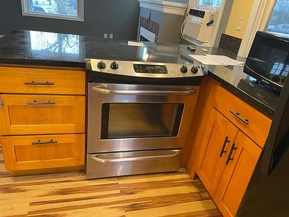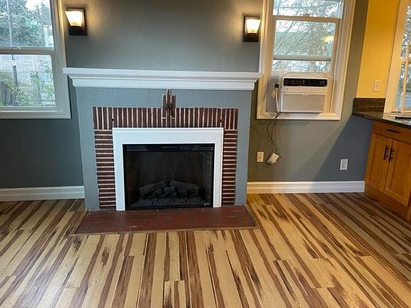 One bedroom apartment, newly renovated. New kitchen and appliances including washer/dryer and an electric fireplace. Cadet heaters and air conditioning in unit. Outside courtyard. Great location, close to Max and freeway access. New Seasons grocery store nearby. First and Last month rent due prior to moving in. Water and garbage included.