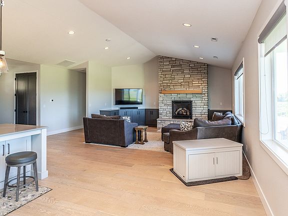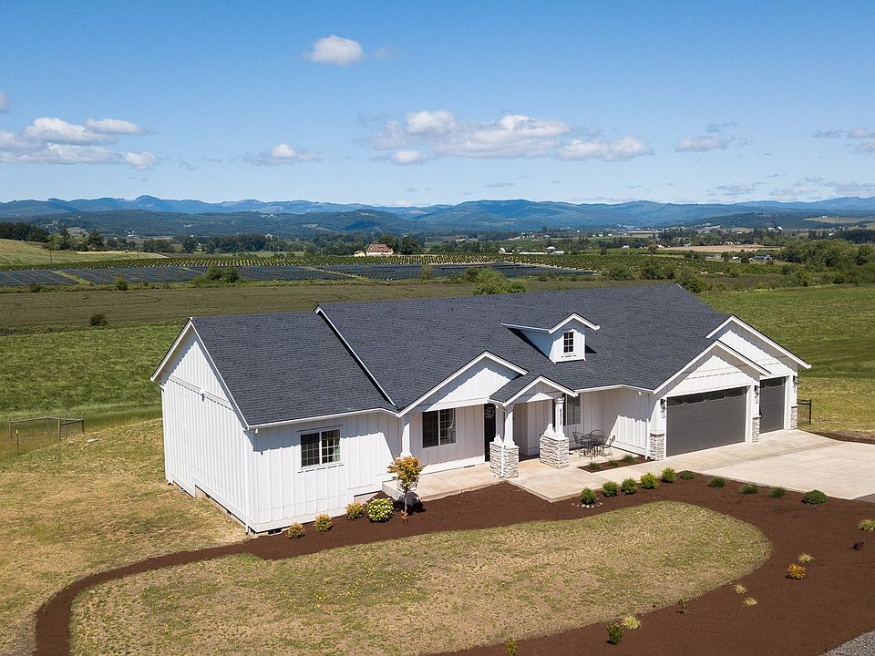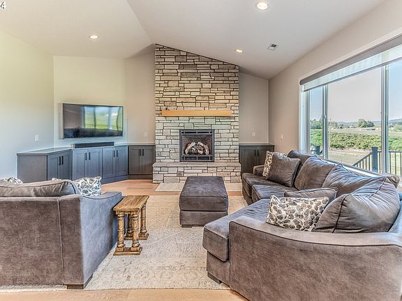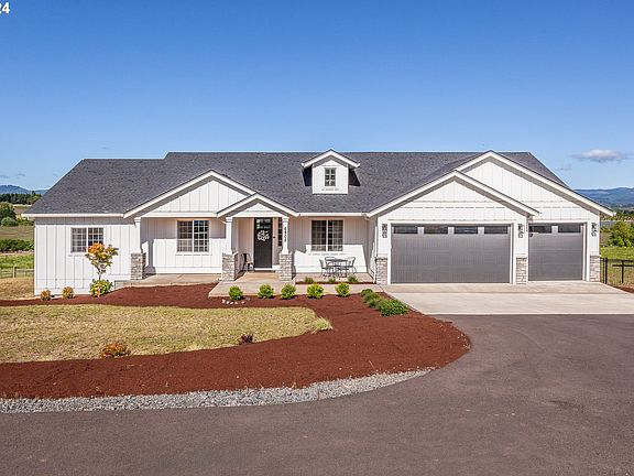 Amazing views from this stunning home, nestled in Oregon's beautiful wine country! Built in 2021, this 4 bed 2.5 bath home is immaculate, filled with high end finishes, and sits on 10 useable acres with breathtaking views of the coast range and local farms! The home truly has it all, luxurious primary suite with walk- in closet, tile walk-in shower and views out your bedroom window! Bright, open great room looks out to the hills and features built-ins, a fireplace with stone surround, and vaulted ceilings. A true cook's kitchen with gas range, large island and quartz counters. Dining area slider opens to a large deck with propane fire pit, perfect for summer BBQs or just sipping wine enjoying the scenery! Separate office, laundry room, 3 car garage, and plenty of room for boat or RV parking. So many extras, including dog run, Tesla charger, trex deck, tool shed and more! Located within the Yamhill-Carlton AVA, there are endless possibilities for using the property and potential farming, and only minutes to charming Yamhill and Carlton! This one is a must see!