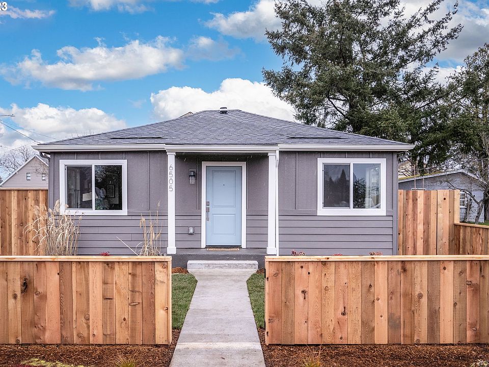 RENOVATED 3 bedroom ONE LEVEL home fully fenced w/ off street parking. MODERN Kitchen showcases Stainless Steel appliances w/ range, FRIDGE, range hood & dishwasher. QUARTZ counters & ample counterspace. Durable LVP flooring, NEW carpet, insulation, newer exterior paint, NEW forced air heating and water heater. EASY CARE landscaping plus new CONCRETE patio. Quick access to Woodstock neighborhood, local eateries, shopping and freeways. MOVE IN READY, make your appointment today! [Home Energy Score = 6. HES Report at https://rpt.greenbuildingregistry.com/hes/OR10212911]
