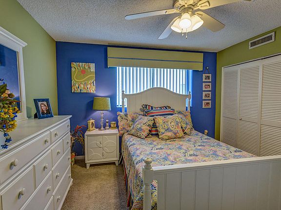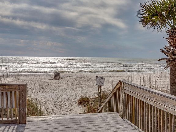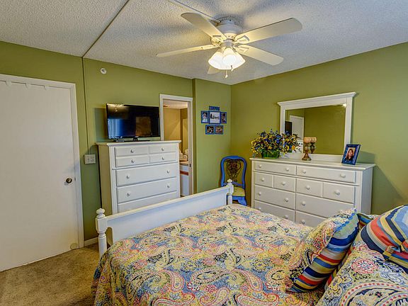 Stunning Beach Condo. Located in building 'A' convenient to all amenities. Freshly painted,Non Rental and well maintained. New heating and air installed in 2014, new frig and garbage disposal 2016, new microwave installed over stove. High end king size bamboo and wicker bedroom suite in master bedroom surrounded by Plantation shutters. Charming Costal Queen bed suite in guest room. Cornice board valance trimmed in same tones as bed covers. Flat screen TV's in both bedrooms. Living area shows both warmth and style with Cornice Valence over sliding doors which accents both couch and loveseat sleeper. Flat screen TV. Large Gazebo surrounded by 2 pools, hot tub and kiddie pool. Additional amenities include tennis, shuffleboard and handball courts.