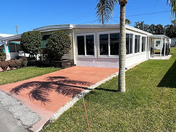 Are you looking for a water view in a quaint little community? Here you go! This two-bedroom bath mobile home is located in the close net community of Palm Grove in Ellenton Florida. As you relax in your living room, you will be able to enjoy a partial water view in a mobile home that has been completely updated. Let's start with a new tankless hot water heater, split ac unit in the attached enclosed sunroom, new insulated roof, double pane windows throughout, new vapor barrier, new hardwood, and wood laminate flooring, new plumbing, French drain, extended carport, and Kitchen Aid appliances and much much more! Grab your toothbrush because this home is turnkey as well. Located close to shopping and restaurants as well as many additional attractions. This home is absolutely stunning!!! Don't wait, this one won't last. All listing information is deemed reliable but not guaranteed and should be independently verified through personal inspection by appropriate professionals. Integrity Mobile Home Sales cannot guarantee or warrant the accuracy of this information, measurements or condition of any property. Measurements are approximate. Lot rent is subject to change.