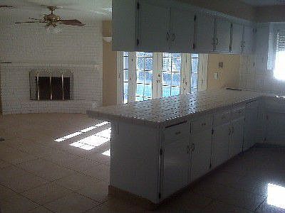 Tons of tiled flooring. Kitchen has a large breakfast bar and opens to the living/family rooms. Newer composition roofing. Great price for the area.