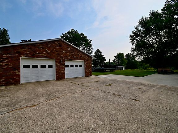 Welcome to this gorgeous outdoor oasis. Huge, flat front and back yard with large covered patio area, pool with composite deck and aluminum railing, wood shed, 12x24 shed with garage door. Tons of parking space with extra parking pad for an RV or camper. Nice eat in kitchen has custom made cabinets, corian countertops and stainless appliances. Two car garage and large unfinished basement that has been waterproofed by Dwyer and has a transferrable warranty.