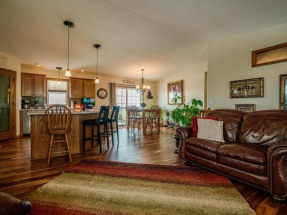 Are you looking for an UPDATED, OPEN CONCEPT, RANCH STYLE HOME, with WALKOUT BASEMENT on 1.86 ACRES? If so, LOOK NO FURTHER! This home featuring over 2,800 sf and even has 3 BEDROOMS on the MAIN FLOOR! When you enter this home you will love the nice sized living room with gas fireplace, the kitchen with large island- which has recently had new a backsplash installed. The dining area is large and has the door to the deck. The master suite is good sized, has a walk in closet, and has a jacuzzi tub and double sink in the master bath. There are 2 additional bedrooms, full bath, and laundry on the main level. In the lower level you will find a large, cozy family room with a walkout door to the back yard, 2 additional conforming bedrooms, a full bath and a large storage room. New appliances and new flooring are other recent updates! There is a triple garage and a camper pad for your convenience! Enjoy the gorgeous sunsets! This is a true must see, call your REALTOR to view it today!