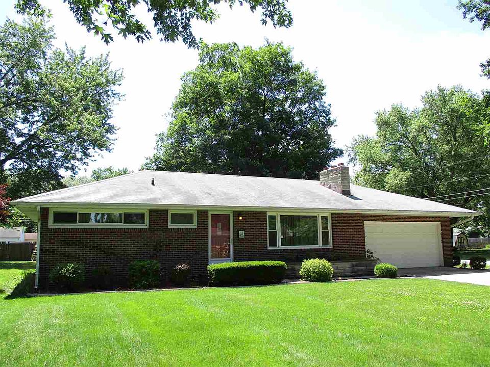 Charming all brick ranch on a large corner lot. This home has great curb appeal, and a fantastic back yard that offers lots of privacy with 6' cedar fence. Inside you are greeted by a large living room featuring a limestone masonry fireplace. 2 ample sized bedrooms and a 1/2 bath in the master bedroom. Large garage. Updated hvac system. Lots of great possibilities with this home. Lake access comes as part of the HOA dues!