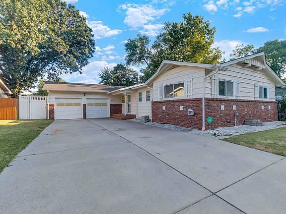 Charming home located in Pine Valley Estates, a desirable and established neighborhood with lots of charm and mature trees in NE Wichita with easy access to highways and many shopping and dining options. This mid century modern style home has a new roof, guttering, fresh interior and exterior paint, and newly refinished gorgeous hardwood flooring. Galley style kitchen with nice tile flooring, pantry, and gas stove. Two dining room options - formal/ informal. Large living room with wood stove. Three bedrooms and two bathrooms on the main floor. Main floor master suite has a private bathroom with shower. Lots of closet space in all bedrooms as well as great storage in hallway linen closet. Nice wood paneled interior doors. The partial basement has a large family room and lots of storage space. Two car attached garage, oversized maintenance free deck, maintenance free vinyl fence, storage shed. Great value $$$, don't miss out on this one!