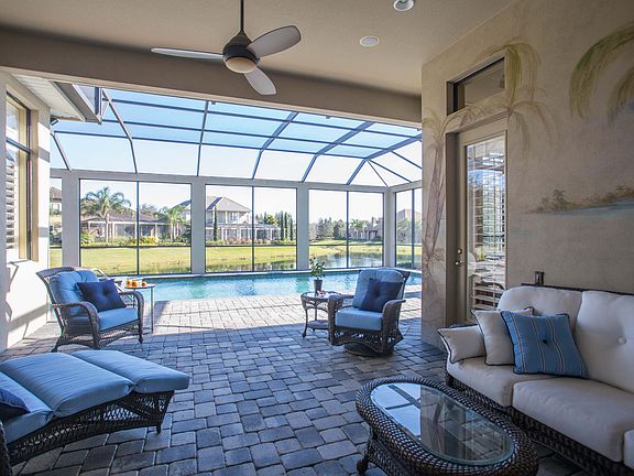 Custom built water front home in luxury gated Keene's Pointe. Close to some of Florida's world famous theme parks, world class golf courses, wonderful shopping and restaurant row. See fireworks every night. From 535, enter the gate at Keene's Pointe., drive down tree-lined Tibet-Butler past the Golden Bear Golf Club on both sides to the Village of Camden and into Muirfield. Enjoy the beautiful pond on the right surrounded by the walking path. As you arrive at the house notice the custom paver drive with extra parking, 2 story entry, arched windows, 3-car garage, mature landscaping, custom shutters, pond views front and rear. Entering thru the beautiful French doors, you are welcomed by magnificent travertine marble floors throughout and a straight thru view to the pond behind the house. Note open floor plan and tall tray ceilings. To the right, a separate den/study, and dining room to the left. Enter the master bedroom suite with its high ceilings and lovely bay window overlooking the lanai and pond, and large closets. Walk thru the living room, newly updated modern kitchen with beautiful quartzite tops and Sub-zero/Wolf stainless appliances. Through the french doors in the family room to the fully screened lanai with oversized heated Pebblec finished salt spa and pool. Back inside, view the other bedrooms, full baths, full laundry room, and "stop and drop" pantry. Wired for sound.