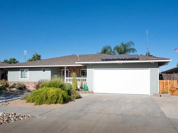You will love this beautiful 4 bedroom, 3 bathroom Hallmark home tucked into an established neighborhood and just minutes from Riverpark & freeway access. The 2033sqft floor plan offers spacious living room, open to eating area and kitchen, and beautiful wood flooring throughout. Enjoy two master bedrooms with private bathrooms and 2 additional spacious bedrooms that share a bathroom. Amenities include indoor laundry room, SOLAR POWER, whole house fan, and storage/pool pump shed. Great curb appeal and low-maintenance landscaping in front/backyard. You'll love relaxing in your backyard under the large covered patio and cooling off in the sparking pool with string lights above. Don't miss this opportunity! Call to schedule your private showing.