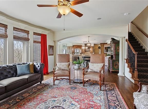 Must See Carriage Hill Estates Home nestled on a gorgeous wooded lot overlooking Atkins-Johnson Farm. This magnificent 2-story Custom Built home will WOW you the minute you walk through the double front doors! Featured on the main level is a Chefs Kitchen, Great Room, Sitting Room and Dining Room. So much space for living and ease of entertaining offered here! The Chefs Kitchen comes complete with New Fisher Paykel Gas Cook-Top, Built-in Oven & Microwave, Walk-in Pantry, Custom Island, Granite Counter tops and Covered Deck! Oversized Master Bedroom Suite with Fireplace, Private Covered Deck, Spacious Walk-in Closet and Luxury Master Bath featuring double vanities and separate tub and shower. Bedroom 2 has a full private bath and walk-in closet. Bedroom 3 and 4 have a Jack and Jill bath. Laundry Room is conveniently located on the bedroom level. The Light Filled Walk-Out Basement offers a Library Room, Private Office, Family Room and Full Bath. A 5th bedroom could easily be added in the basement. Spectacular outdoor space offers Flagstone Patio with impressive Stone Fireplace.