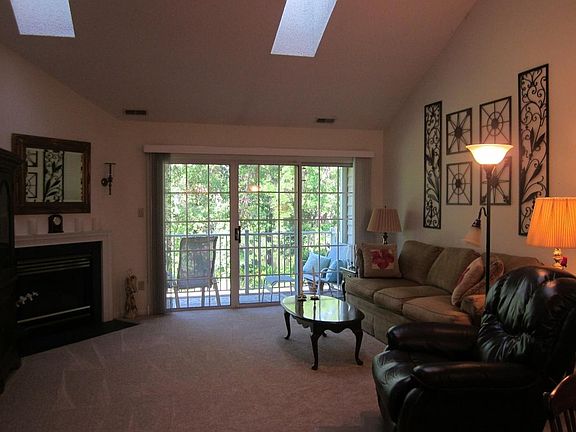 A rare find! Immaculate and neutral 2nd floor condo with gorgeous view of pond, jogging path and trees. This lovely spacious condo features 2 bedrooms, 2 baths, cathedral ceiling with skylights, gas fireplace, ceiling fan with light and 3 pane sliding door leading to large trek deck balcony with overhang and a great breath taking, peaceful view of a pond. The large kitchen features washed oak cabinets, laminate wood flooring, 5 burner gas range with self-cleaning oven/3 years old, new dishwasher, built in microwave, refrigerator, garbage disposal, ceiling fan with light plus recessed lighting and double window with window seat. Master suite boasts 2 large walk-in closet plus extra storage, ceiling fan w/light and master bath with double shower and large linen closet and 2nd bedroom offers double closet, ceiling fan with light and access to main bath. This won't last long! Also furnace, air conditioner and skylights were replaced 3 yrs. ago.