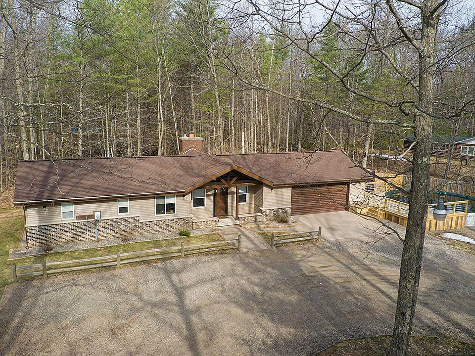 This unique Lake Tomahawk 3BR/2BA home on 1.54 wooded acres has so much to offer! A highlight of this property is the 1/19th interest in the Deeded Access to the 125’ of sand frontage on North Two Lake that is within walking distance. Lake access without the lakefront taxes! Many updates have been completed, such as the new central air in 2021, new furnace, siding, and windows in 2019, new roof in 2018 to name a few. The Living Room exhibits a cathedral ceiling with beam accents, a brick wood fireplace and access to the deck with forest views. The open Kitchen & Dining Room creates an easy way to entertain. The MBR Suite w/BA and 2 more BRs & BA complete the main level. The lower level features a space that could be a family room or whatever your needs may be. There is the convenience of the attached 2 car garage with extra storage AND one more surprise is the new above ground pool with sundeck that will be a sure hit in the summer for everyone to enjoy.