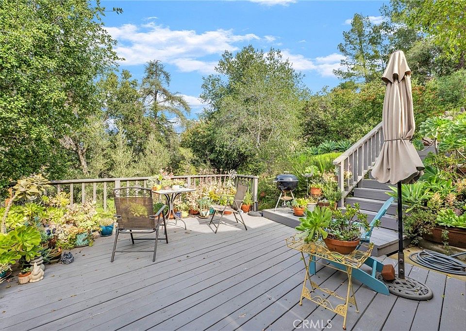 Hollywood & the film industry came to the area in the early 1920s and began building rustic cabins for their weekend getaways and soon enough the hilly and forested community of the Santa Susana Knolls was alive and thriving. This is one of those cabins. Built in 1935 at the end of a private road, this secluded 2 bedroom 1 bath home is immersed in rocky, wild landscape and sun kissed through tall windows and skylight. A terraced deck connects the home to the tree covered hillside that could easily become a spectacular flower garden or a place to grow your own fruits & veggies. Over the course of 40 years the homeowner has lovingly maintained this property and it shows. The roof was installed in 2011, the windows are double pane. The living room and primary bedroom enjoy vaulted ceilings. Laminate wood flooring is found throughout the home. The custom cabinetry in the kitchen is crafted from cherry and purple heart woods, known for their strength and durability. Open concept with defined spaces describes the kitchen, living and dining areas. A large deck provides a perfect space for BBQ, sun bathing, parties and naps. The extra large workshop/storage building houses your tools, the washer & dryer and the 40-gallon water heater. The home is heated by fireplace and portable oil filled radiant heaters in winter and cooled by window AC in summer. The property is connected to public utility for water, electric and gas and uses a septic system for sewage. The area is rich in history from the times of the Chumash Indians to the development of the railroad and the historic Santa Susana Railroad Station. The locals are known for being an eclectic group seeking a laid-back refuge from the hustle of city living. This home is a little bit of heaven on earth and it could be the perfect home for you, simply call to schedule your showing appointment today.