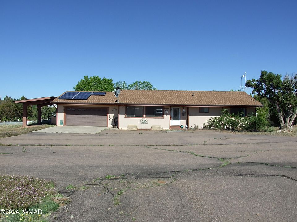 Perfect home for ranch style living, but still close to town. The property is partially fenced on the outside and also has interior fencing as well. Nice living room area with custom fireplace mantle and stone work. Open kitchen and dining room and a sliding door to the covered back porch and the large back yard. Also has a garden area and older green house. The basement is unfinished and has lots of open space and also a closed in storage/pantry with custom shelving. The entrance has a private gate that has an opener and also asphalt driveway to the home and large shop. The shop has lots of room for storage and also a second level area. Inside there is also an eclosed work space as well. Private will with a wellshare agreement in place . Solar lease paid until 2032. So much potential.