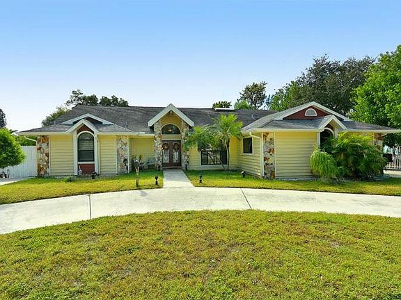 Riverview Blvd location is where you will find this 3BD/2BA pool home situated on almost a 1/2 acre. The interior boasts vaulted ceilings, wood burning fireplace, office which could be used as a 4th bedroom, interior laundry and more. The screened lanai offers lots of entertaining space that surrounds the pool. There's a detached 1600 sq ft garage in addition to the main garage that offers RV/Boat storage, workshop, or whatever you might fancy. Currently 800 square ft is an air conditioned game room and the other 800 sq ft is garage and storage. It's perfect for the contractor etc that works from home as well. The spacious lot offers plenty of additional room for expansion or just room to roam with privacy from all sides. You must see as this property is not a drive by. Make Riverview Blvd your new address!
