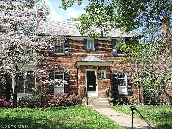 attractive classic brick two-story with a slate roof, quiet street with the Town Park at the end, easy walk to Metro. There's a lovely, custom Craftsman-style stairway to the finished half of the downstairs which has a media room, home office area, and full bath. The garage is accessible from a mid-block alley.