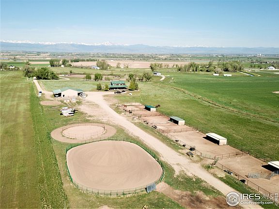 Top of the world commanding views of the Rockies from Pikes Peak to Longs Peak. This very private 22-acre equestrian property is extremely private, peaceful and serene but close to Erie, Longmont, Boulder, & DIA. Bring your toys, horses & farm animals or just enjoy the park like setting & everything this home has to offer. Plenty of space for a pool, tennis court, indoor arena or second residence, what are you dreaming of? Unincorporated Weld County zoning allows potential for easy expansion or personalization - the possibilities are endless! Protected by a gated entrance and long driveway that welcomes you to the beautifully designed home with an inviting wraparound porch that takes advantage of the breathtaking panoramas of the snow-capped Rockies from Pikes Peak to Longs Peak & beyond with no neighbors to the west and south blocking your views. Inside are cathedral ceilings, a stone fireplace, and numerous windows ushering in natural light. All utilities are underground to provide uninterrupted views. The potential for a beautiful remodel is endless, which could continue to increase the value of this property immensely. Large shop w/ 220V, & covered RV parking. 6 Horse pens w/ water & power. Roping Arena w/ roping chute and return alley..