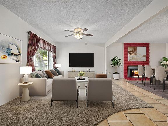 This charming 3-bedroom, 2-bath home offers a spacious and inviting layout, featuring a great room with a cozy fireplace adjacent to the dining area plus indoor utility. The kitchen boasts white cabinetry, a bar top seating area, perfect for casual dining or entertaining. The primary bedroom includes a walk-in closet and an updated bathroom with stunning tilework in the shower. Recent upgrades include newer plumbing, roof, and water heater for added peace of mind. The property also provides large RV parking, a generously sized shop with roll up door, loft storage area and alley access. Additionally, features lush landscaping, a covered patio complete with ceiling fans, ideal for outdoor relaxation year-round. See it today!