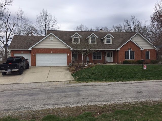 This home is a beautiful 3 bedroom, office, 2 3/4 baths with finished basement on 3.28 acres. Downstairs are 9 ft walls over the standard 8 ft. The entrance has tall cathedral ceilings that enters the atrium overlooking the 10 acre lake. If you are an early riser you will enjoy the beautiful sunrise over the back lake on the covered deck. This home has 3 car garage on top and 2 car garage on bottom. Feel free to call us to set up an appointment to look at this home. We can be reached at 618-978-3158.