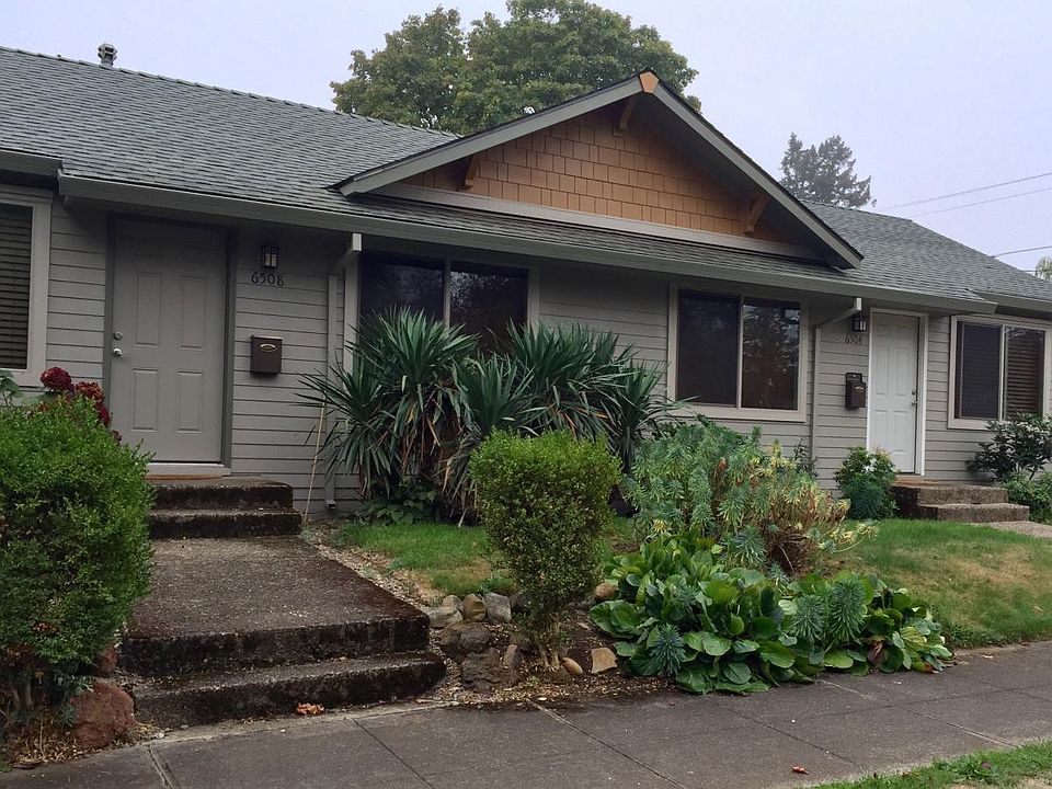 Beautifully remodeled mid-century duplex unit, includes utilities, fully-furnished. Fenced private side yard and fenced shared backyard. Hardwood floors, stacked washer & dryer, window coverings, two queen beds, gas range, cable TV, Internet, etc. Corner lot, single level, amazing location walking distance from New Seasons and all Woodstock has to offer! Near Reed College. Duplex rental is fully-furnished and includes utilities (gas, sewer, garbage, water, electric, cable, and internet.) NOTE: Outdoor furniture is not included.