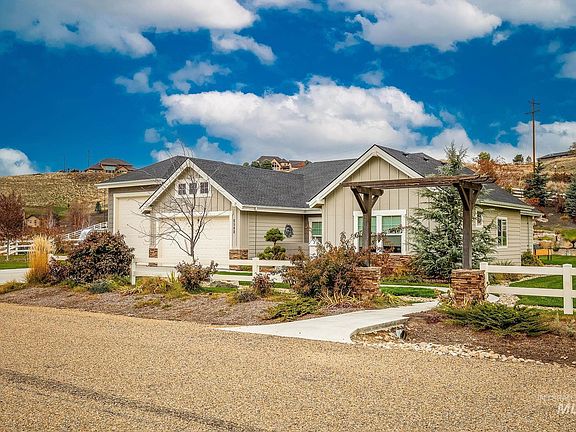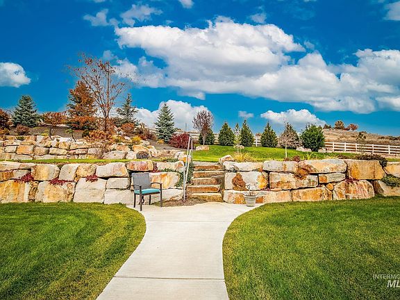 Tucked away in the picturesque Sage Canyon Estates in the foothills of Star, this meticulously maintained home is situated on 1.28 acres with a Private, Dream Backyard! Boasting a single-level, split-bedroom floorplan, this home features every upgrade imaginable, including a Stack Stone Gas Fireplace, Hardwood Floors & Extra Tall Ceilings. The spacious Kitchen includes a large Granite Island, 2 Pantries (including a Butler's Pantry), Soft-close Cabinetry & Double Ovens. Featuring 3 bedrooms PLUS an XL Bonus Room AND an Office, this home provides ample space for all. Step outside to enjoy the Multi-level, Terraced Yard with Boulder Walls, Meandering Paths, Stone Steps, Seating Areas, Fire Pits, Fruit Trees, Mature Landscaping, Garden Boxes & stunning Views! Additionally, the property includes a 31 RV/Boat Bay with a Workshop, 2 Sheds with electricity & fully owned Solar Panels. With limited CC&Rs, bring your animals & all your toys and enjoy the truly exceptional living experience this property offers!