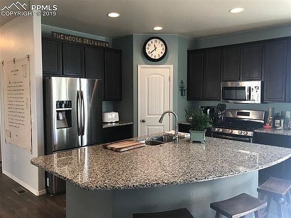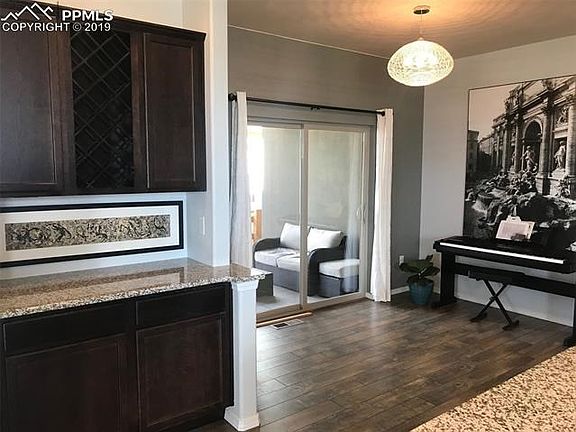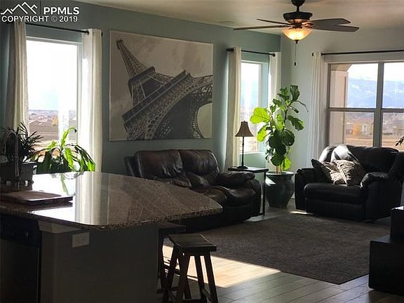 Immaculate, hard to find single level home on oversized lot with TONS of upgrades. Amazing Pikes Peak views, plumbed for gas fireplace, garage is insulated and finished with epoxy floor, and cable. Family room has in-ceiling speakers. Upgraded 42 inch upper cabinets, granite countertops, upgraded carpet pad, and so much more!