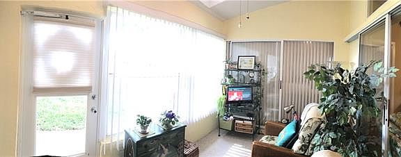 This 1800 sq ft home feels so much more spacious given the immense natural light & vaulted ceilings. Improved with $65k in updates since its last purchase, you'll find warm maple built-in cabinetry in abundance through the kitchen and dining area for the entertainer to stow. You'll be treated to an enclosed, cooled, Florida room ON the fairway; the cranes can visit! You also get beautifully maintained laminated floors, newer washer/dryer, newer Daikin AC, sealed pavers, stainless french door Samsung fridge,& updated baths with granite features. It's true there is a one time capital assessment, but any golf enthusiast know with one putt the quality of this USGA standard green. This LIFESTYLE at this price is not to be missed!