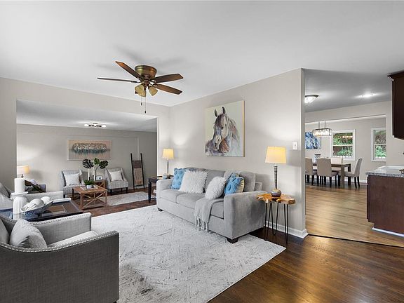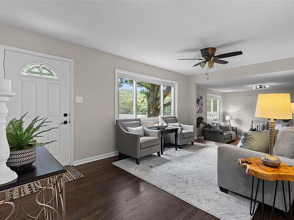 Outstanding rehab just complete on this updated ranch home in the heart of High Ridge! Spacious family room will greet you as you enter, lots of natural light beaming through the vinyl windows! Freshly refinished hardwood floors flowing through family room, hall, and 2 bedrooms! Separate living room with wood burning fireplace and new LVP flooring! Updated kitchen features premium cabinets with crown molding, granite countertops, tile backsplash, SS appliances & new flooring! Primary bedroom suite in HUGE, with private bath boasting custom double bowl vanity, custom trim work, full tile shower, and LVP flooring! Additional hall bath boasts lots of tile work and is beautifully updated! Large deck overlooking private fenced in back yard. Oversized detached garage with extra covered storage. Additional features include freshly painted throughout, new door hardware, new water heater, low maintenance vinyl siding, private setting backing to trees and woods, quiet and peaceful setting!
