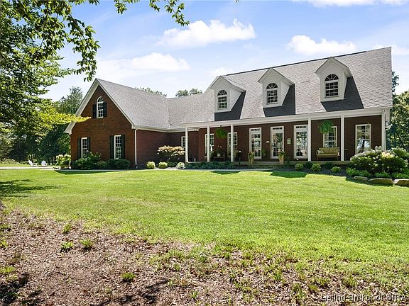 This stunning custom built brick home is nestled in a serene wooded lot that boasts privacy and country living. There is a creek that runs along the back of this property. The seller has spared no expense when maintaining this home, many updates include kitchen remodel in 2019 featuring custom built Amish white cabinetry, with soft closure and pull out shelving. Fantasy Brown - Quartzite Countertop. Engineered hardwood flooring, new appliances and a cast Iron apron sink. 2022 Home was professionally painted throughout. The main level features an open concept with split bedrooms. Fireplace in the living room, 3 Bedrooms, plus a bonus room off the primary bedroom, could be used as an office, nursery or workout room. 2 Full and 1 half baths, laundry on main level. Partially finished basement includes fireplace, recreational room, wet bar, half bath and a 4th bedroom /office (Non conforming - no egress) All woodworking in the basement, doors and bar were custom made out of poplar wood. Roof , gutters and gutter guards were replaced in 2016, HVAC replaced in 2018.