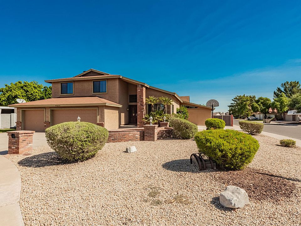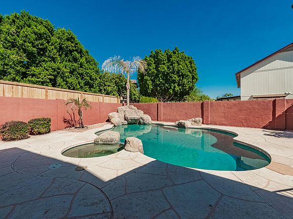 Beautiful 4 bedroom 3 bath with pool in Quail Thunderbird Meadows. One bedroom down plus bonus room that could be a 5th bedroom. Spacious Owners' Suite and two additional bedrooms upstairs. Eat-in Kitchen with granite countertops, lots of cabinets and stainless steel appliances that convey. Separate large family room with cozy brick fireplace, formal living and dining rooms. Wood floors throughout this spacious home. Beautiful play pool with water feature, heated spa and built-in BBQ. Covered rear patio + RV gate with long cement slab and a large storage shed. 3 car garage. Soft water system present. Inside laundry room, w/d convey. Popular Legacy Charter School just blocks away.