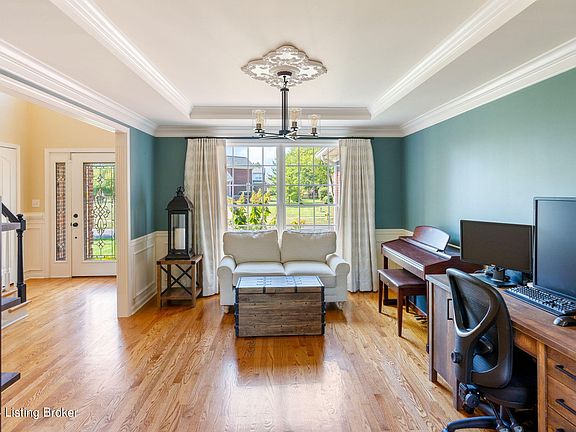 it ideal for family living or accommodating guests. The finished walkout basement is great for both entertaining and unwinding, featuring a built-in seating area and a fully equipped bar. The bar includes a refrigerator, microwave, TV, sink, and ample bar seating. Additionally, this level offers a comfortable living area, a dedicated workout room, and a full bathroom, providing an exceptional space for relaxation and fun. The seamless transition from indoor to outdoor living continues as you move out to the multi-level patio. Whether you're enjoying a quiet morning by the waterfall or hosting friends in the lush, beautifully landscaped yard, this outdoor space is your private sanctuary. Located off Interstate 71, this home offers an unbeatable location within the highly desirable Oldham County school district, near a variety of shopping and dining options. The convenience of nearby amenities enhances the appeal of this prime location!