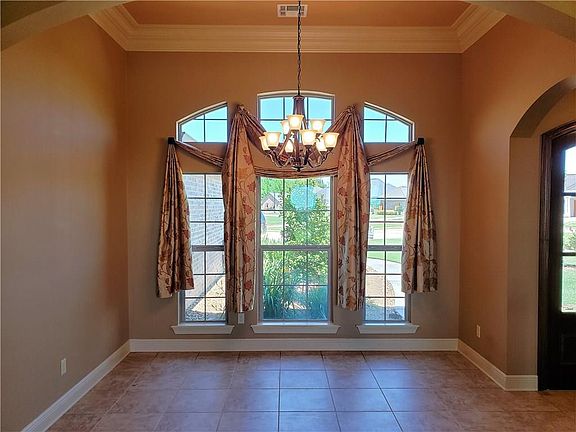 Enjoy the gorgeous sunsets, evenings, from the privacy of your serene back patio! This Tennyson Oaks home offers all of the bells and whistles focusing on quality workmanship throughout, triple crown molding, 10 an 12 foot ceiling and very open living area complete with decorative fireplaces, open to the formal dining with eyebrow windows to bring the outdoors in! The kitchen offers custom cabinets, pullouts, and soils surface granite counter-tops, tumbled marble back splash and top of the line appliances! The breakfast area also features many windows. The master bedroom offers trey ceilings and a wonderful bathroom complete with a soaking tub, double vanities with granite counter-tops and a separate shower. The backyard offers an element of privacy with the wooden fencing. No HOAS on this property!