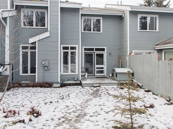 2 story townhouse in fantastic location across from Anchorage Christian School. Cherry laminate wood floor on the entire first floor and master suite upstairs, spacious master with soaring ceilings and private bath. Lovely setting backs to courtyard area, fenced yard. Easy access to hospitals and universities.