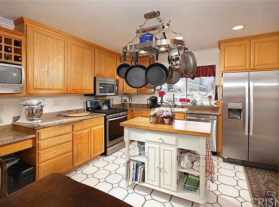 Beautiful upgraded home in desirable east Simi neighborhood with 3-car garage and entertainers backyard with pool & spa. On corner lot of cul-de-sac. Kitchen has granite counter tops and SS appliances, island w/pan rack over & built-in desk. Living room has beautiful mirrored traditional fireplace with side bookcases and large double French doors leading to beautiful covered patio and pebble-tec & stone pool water features and stone built-up spa with flow in to pool. Grassy areas with white finyl fencing and lemon & lime trees. 2 bedrooms downstairs and 3 bedrooms upstairs with large master and closet/dressing area. Designer carpeting and tile floors. Mirrored closet doors, crown moldings, recessed lights, some ceiling fans, skylight over stairway and much more. Newly painted exterior. Pool and gardener included. Good credit and income verification will be required. One owner holds active CA real estate license. Available Dec. 1st.