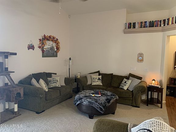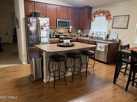 Welcome Home to your spacious 3 bedroom 2 bathroom home in Oasis at Magic Ranch! Move-in ready with formal living/dining area, spacious kitchen adjoins a great room with GE profile stainless steel appliances. Owner's suite with soaking tub, separate shower, double sinks and walk-in closet. Backyard is perfectly sized and offers a cozy covered patio and plenty of areas to soak up the Arizona sunshine. Upgrades: hardwood look tile, cabinet hardware, garage door, master window, interior neutral paint, exterior paint, fully landscaped yard with trees. Ceiling fans, covered patio. Located near the hospital, dining, schools and shopping. Professional photos 9/9/2021. This is a beautiful home with a spacious floor plan. This home will not last.
