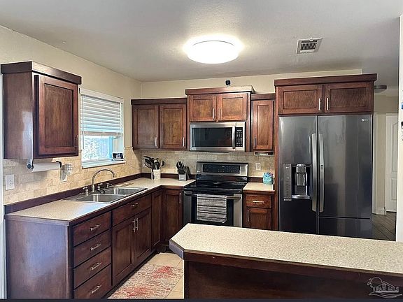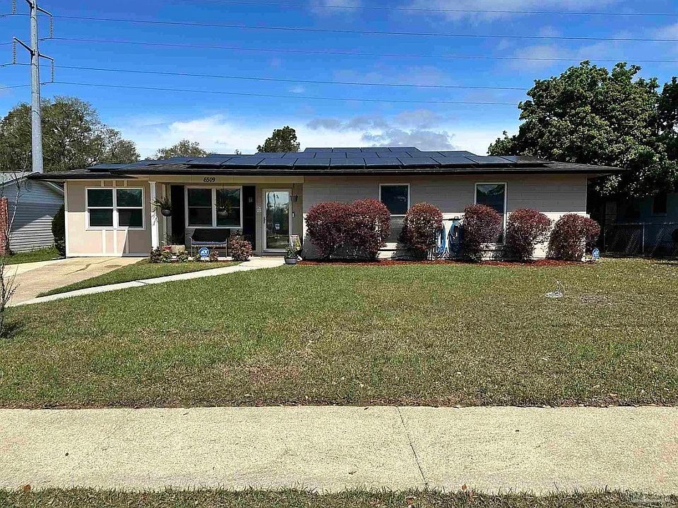 Cozy, pristine home located in Central Pensacola. This beautifully put together 3BR/2BA contains multiple extras to fit your family's needs. A converted garage, covered back porch, private fencing, tool shed, solar panel (2019 paid) and an inground-pool (2018)! Accented walls in the entry room and master bedroom. Cabinets in kitchen will be updated.