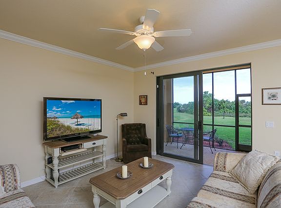 Seasonal condo located in the gated community of Heritage Harbour/River Strand. Live the resort lifestyle in this gorgeous two bedroom two bath ground floor condo. Construction was completed and all new furnishing were purchased November 2015. This condo offers, stainless steel appliances, granite counter tops, and an office work area. Relax on your screened in lanai and cherish the breathtaking views of the lake and golf course. The amenities include: 27 hole championship golf, state of the art fitness center, Har-Tru clay tennis courts and resort style pool with spa. Enjoy dinner at the Tuscan style restaurant!