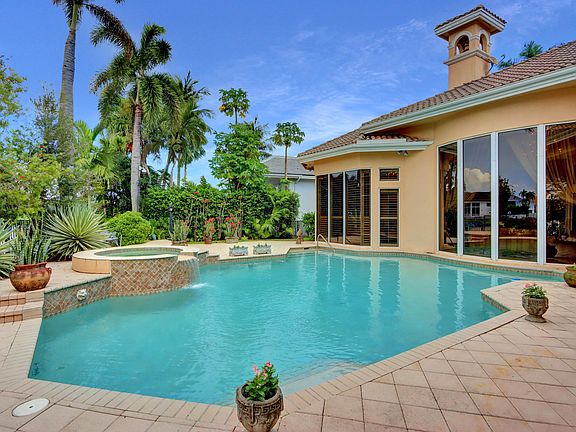 GOLF MEMBERSHIP TRANSFERABILITY! Don't miss this opportunity to play golf immediately! Lake views fill this sprawling custom one-story estate of Mediterranean old-world charm with 4 bedrooms plus an office,hobby room, 3-car garage & circular driveway featuring volume ceilings with crown moldings; Saturnia marble, hardwood & luxury vinyl floors; plantation shutters, wood blinds & custom shades; spacious Living Room with a fireplace & wet bar; elegant built-in library; island kitchen with white 42' cabinetry,black granite countertops & backsplash & a lovely breakfast nook overlooking the pool area & lake. The rear patio offers spacious open, covered & phantom screened areas with an oversized pool & spa and beautiful lake vistas!