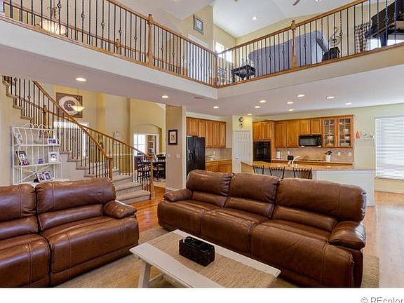 Former model,cul de sac, backs to open space, mountain view. 6 beds/5 Baths+office+loft+finished basement! Main floor features hardwood floors in an open floor plan with a gourmet kitchen complemented by Jenn-Air appliances, cherry/glass cabinets and slab granite island/counter tops. Two story great room with curved stair case to upper level. Spacious main level master suite, double sided gas fireplace facing the expansive 5 piece bath with over-sized closet, entrance from master to covered deck with mountain views, and open space. Over-sized main level laundry, dining room, office featuring built in cabinetry and crown molding. Upper level features, Loft,Guest suite with private full bath, 2 kids beds with Jack and Jill bath, and upper level laundry room. Finished garden level basement has open entertainment area, pool table, 2 large bedrooms with a full bath, Craft room, and storage area. Covered deck, stamped concrete patio, hot tub, backs to open space. Sapphire Pointe