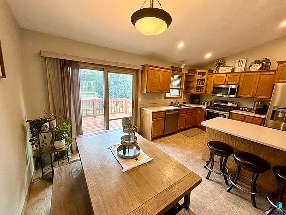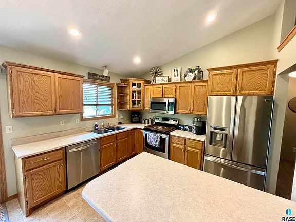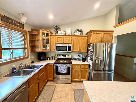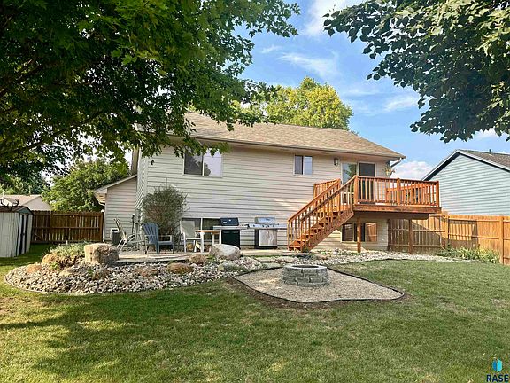 Nice 4 bedroom, 2 bath split level with good sized foyer, a 2 stall garage and fenced in back yard (6 ft wood fence). Freshly stained deck leads down to paver patio, a fire pit, and nice landscaped yard. Vaulted ceilings in living room, kitchen, and dining room. Stainless steel appliances, tons of cabinet space, and breakfast bar island. Cozy up next to the gas fireplace in the great room. Located of West side of Sioux Falls in Minnehaha County. Central air is new, roof was replaced 4 years ago. Interior and Exterior in great shape. Move in ready! Open house Sat 11-12 and Sun 12-1 August 24-25