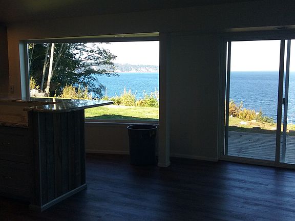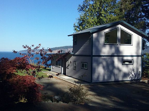 Gated, private setting on quiet, dead-end road in neighborhood of fine waterfront homes. Panoramic views of Discovery Bay, the Strait of Juan de Fuca, Cape George and San Juan Islands. Located just around the corner from public boat launch. The cottage is clean, in great condition, new windows, terraced grounds. Huge detached 3-car garage and shop building. NEW TORCH DOWN ROOF JUST INSTALLED