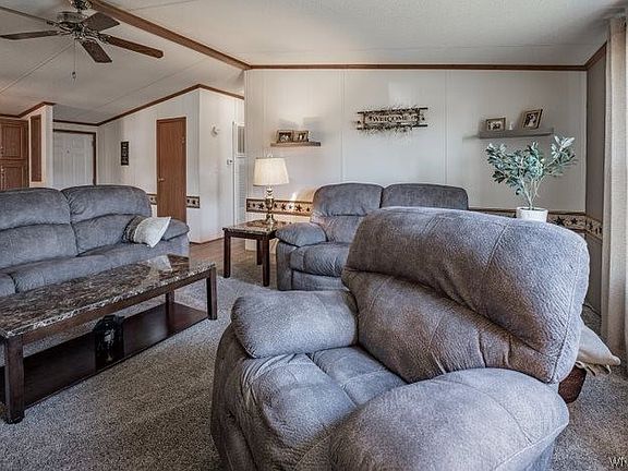 Very meticulously maintained 3 bedroom 2 full bath home has had so many updates that it is practically new! Granite counters, and oversized island, undermount sink and mosaic glass backsplash make the kitchen POP! 3 yr. old stainless steel appliances are included for your convenience. Luxury vinyl plank flooring throughout the kitchen, dining room and both bathrooms. Living room and bedrooms are newly carpeted. Master suite is roomy with a walk-in closet, bathroom with new walk-in shower and granite vanity counter. On the other side of the home are 2 more bedrooms with more than ample closet storage. The main bath has been updated as well to include new tub, toilet and granite vanity counter. All light and plumbing fixtures have been updated , High efficiency forced air HVAC system is 3 years old. Roof is 2014. Shed roof is 2019. BONUS! Carport is extra-long and is used as a patio as well. Come see for yourself! Must complete park approval. 2022-08-12