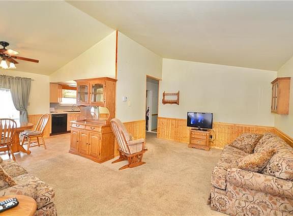 Enjoy amazing views from this 3 bedroom ranch home. This home is move in ready! There is a large eat in kitchen with ample counter space, wood cabinets, refrigerator, electric stove, built in microwave, double sink and dishwasher. The spacious living room has a vaulted ceiling, large picture window and wall to wall carpet. There are 3 bedrooms all with wall to wall carpet and closets. The full bathroom has a double vanity and tub/shower combo. In the laundry room there is a washer and dryer, large closet and is plumbed for a 1/2 bathroom. The home has a new roof, pull down cellular shades, drapes, 2 wall AC units and newer windows. Outside you will find an enjoyable covered porch and a 2 car garage with electric door opener. This home is located to easy access to major routes and shopping.