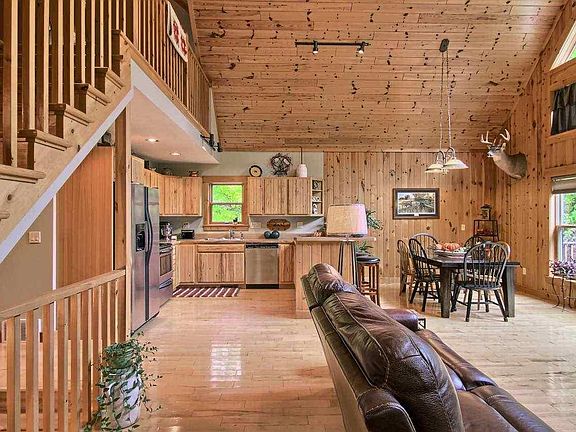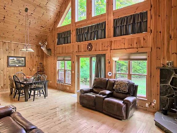 Beautiful & private setting perfect for relaxing by the fire, watching wildlife from your deck or entertaining friends and family! This stunning one of a kind home sits on 10 acres and features open concept living, tongue & groove ceiling & walls, maple flooring, pecan kitchen cabinets and stainless steel appliances. Other highlights include a private master suite, central air, wood stove w/custom NY stonework, full walkout basement, new 20x20 detached garage and 30x40 pole barn. Enjoy all Northern Michigan has to offer with the lakes, rivers, state land, golfing and skiing located nearby!