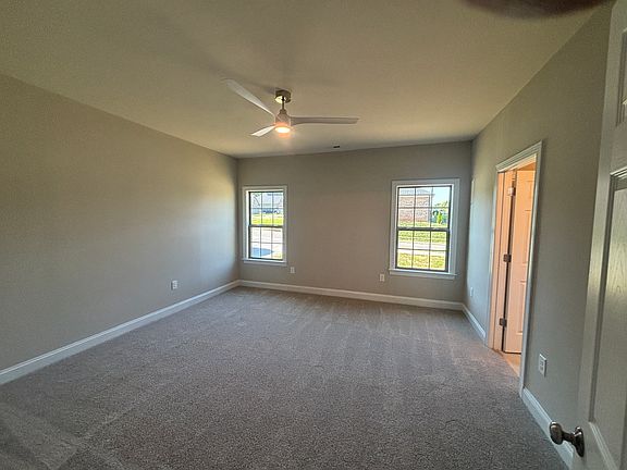 New construction custom built, all brick home located on large 1/2 acre lot in quiet community. Main floor has open kitchen with large island, quartz countertops, stainless steel appliances and eat-in area leading to large living room with gas fireplace. Master bedroom has ensuite bathroom with large tiled shower and walk-in closet. There are two additional bedrooms, full bath and laundry room on the main level. Upstairs is a large bedroom with its own full bath ensuite. Luxury vinyl plank flooring in common areas, carpet in bedrooms, tiled bathrooms. Spacious two car garage. Tenant is responsible for yard maintenance and all utilities. Renters insurance is required. Pets under 30 lbs may be allowed. $250 non-refundable deposit per pet.(max 2 pets).