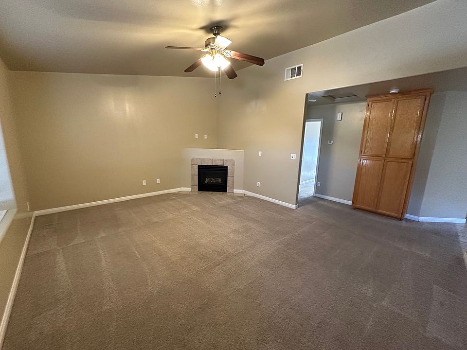 1-bedroom 1-bathroom 1 car garage apartment- Enjoy a warm and inviting atmosphere with a charming fireplace, an electric stove, and cozy carpeting throughout the home. The kitchen boasts stylish flooring, and the fenced patio offers a private outdoor retreat. For added convenience, there are washer and fryer hook ups.