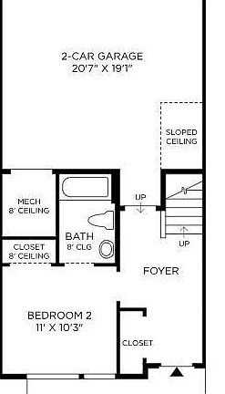 A welcoming 1st level foyer flows past a desirable secondary bedroom with a private full bath, and a two-car garage.