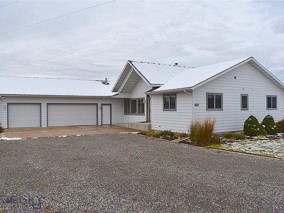 Million Dollar views! This beautiful Ranch style house has an open floor plan, vaulted ceilings, and A-Frame windows. A true Montana living experience. Sit on the newly installed decks, enjoy the fruit bearing trees in the yard, and bask in the 360 views of mountains, streams, and farm land. With the nearby World-Famous skiing, hunting, fishing, sledding, and hiking you'll enjoy the warm rock fireplace when you get home. 5 minutes from our international airport and the new Billings Clinic. This country house also offers a deep 3 car garage and 3rd bay drive through accessibility. With two man doors, huge windows, and excellent lighting it could also double as a shop. The kitchen has white solid surface counter tops, oak wood flooring, and maple cabinets. Each bedroom has its own tiled walk-in bathroom. Radiant heat, central air and a fire suppression system included. The full size basement has so much potential! You can make 4 more bedrooms, a theatre or any thing you can dream up!