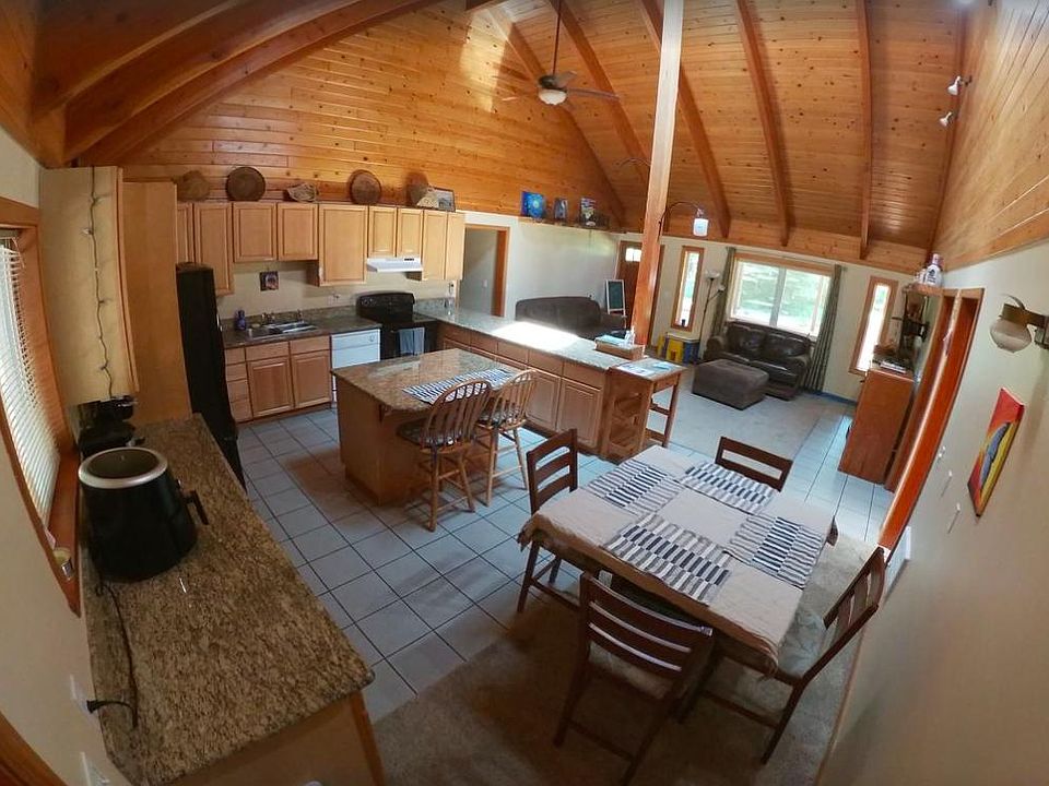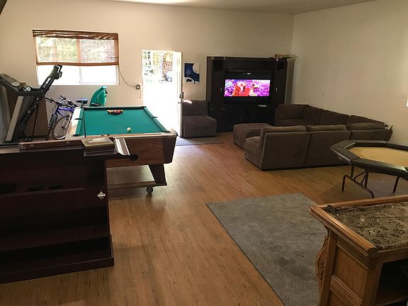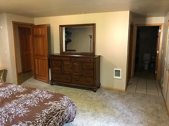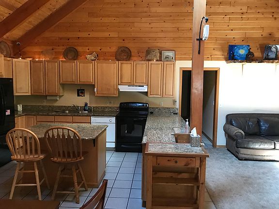 Application pending- Please do not disturb current Tenants. 3 bedroom 2 full bath. Large open kitchen with ample storage and stone counters. Large walk in pantry. Master bed with on suite bath, double headed shower, and private access to back deck. Washer and dryer in own laundry room. Wood burning fireplace. & wall heaters. No AC. Tile floors throughout main, vinyl wood floors in converted garage entertainment space. (pool table included). Outdoors large back deck with sanded fire pit and horse shoe pit. 2.5 wooded acres to enjoy nature and the wildlife. Potential Shop access in back large enough for RV/trailers. 1 year, Tenant responsible for Electricity/water/internet/garbage & snow removal. Pets okay with approval.