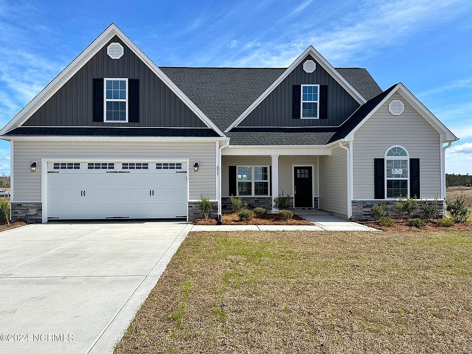 Welcome to the highly desired & popular community of Onslow Bay. Brand new construction built by Onslow County's most trusted & preferred builder, featured in Builder 100/ Top 200 Builders in the country. Onslow Bay is a hot spot, 3 miles to MCB Camp Lejeune's Piney Green gate, 14 miles to New River Air Station & minutes to area schools, shopping & dining. This beautiful neighborhood is sure to impress, complete with a clubhouse area & community pool. Welcome to the Hickory. 3 bedrooms with bonus room/3 bathroom. A cozy covered front porch is charming and inviting. Great curb appeal! The foyer opens to a beautiful formal dining room and leads to a spacious 6 x7 great room with fireplace. The eat-in kitchen features stainless smooth top range, a dishwasher and microwave. Choice quality staggered flat panel cabinets. Quaint breakfast room opens to the alluring covered back porch. Main level laundry room. The upstairs bonus room is one of a kind! A 13 x 19 room with a full bathroom and walk-in closet. The bonus room space is full of possibilities to fit your lifestyle. It can be used as an actual bedroom, a large game room or even an additional living room space. It's unique and impressive! Call today to view and personalize this lovely home sweet home. NOTE: Floor plan renderings are similar and solely representational. Measurements, elevations, and specs may vary in final construction. Limited selections for buyer to choose. Call L/A to verify.