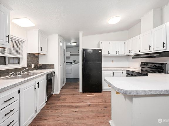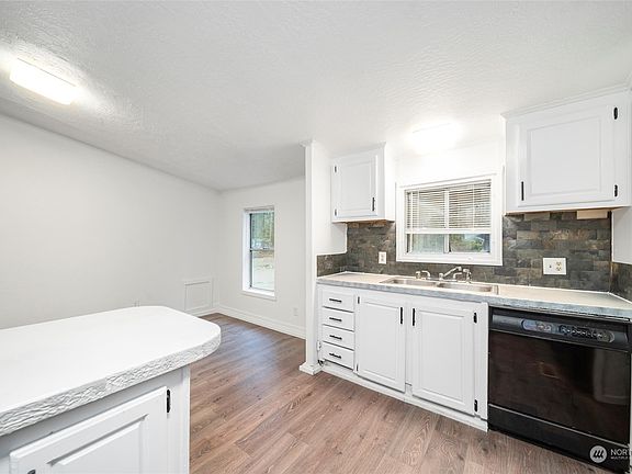 3 bed/2 bath home with detached garage on large lot. Primary bedroom with attached full bath and walk in closet at one end, with 2 additional bedrooms at the opposite end. Large living room, dining room, kitchen, second full bath and utility room are all finished out with fresh flooring and paint. Outside you'll find a nice covered deck, tons of driveway parking, and a detached garage/shop complete with electricity, water and sewer. RV space next to garage with electricity, water and sewer connection.
